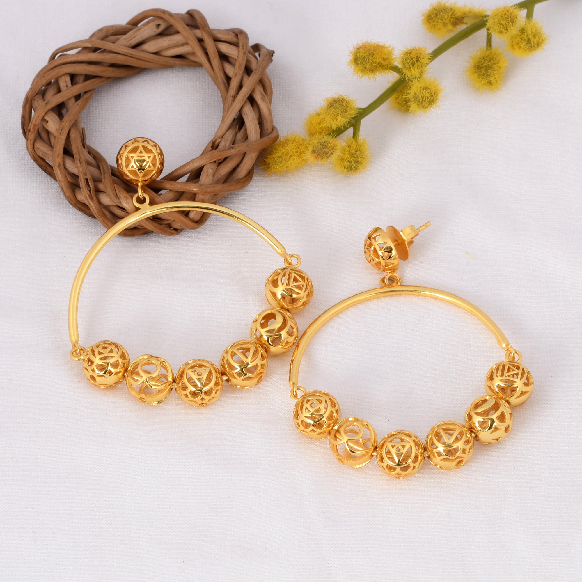 Bring clarity and peace wearing the shree chakra symbol that promotes manifestation, alignment and higher consciousness. It helps you align with your divine power and attract abundance and prosperity.