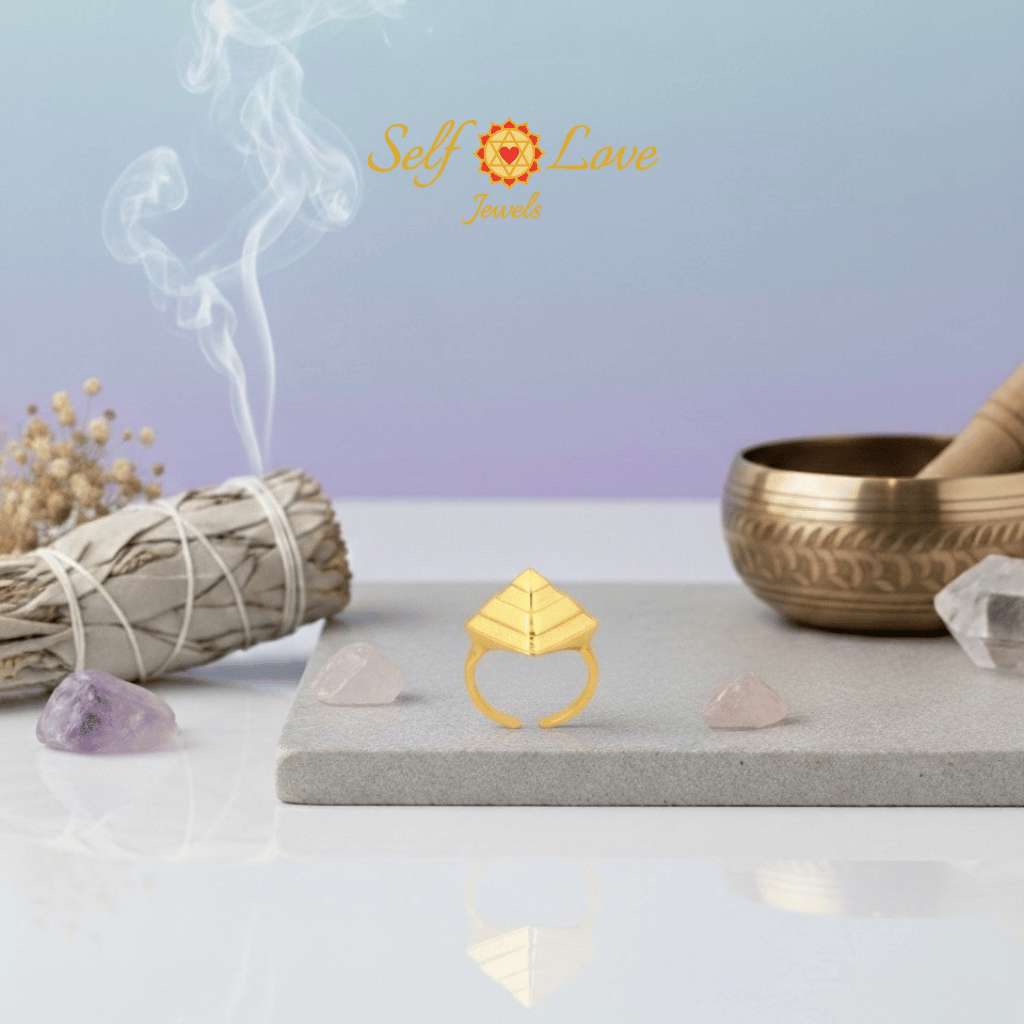 We made this pyramid ring with the dimensions of Giza . The three-dimensional triangular sides with broad bases and tapering tops bound to appear in your head. These structures are storehouses of energy as they are built to incline towards Earth’s magnetic field and are perfect receivers and transmitters of cosmos energy.