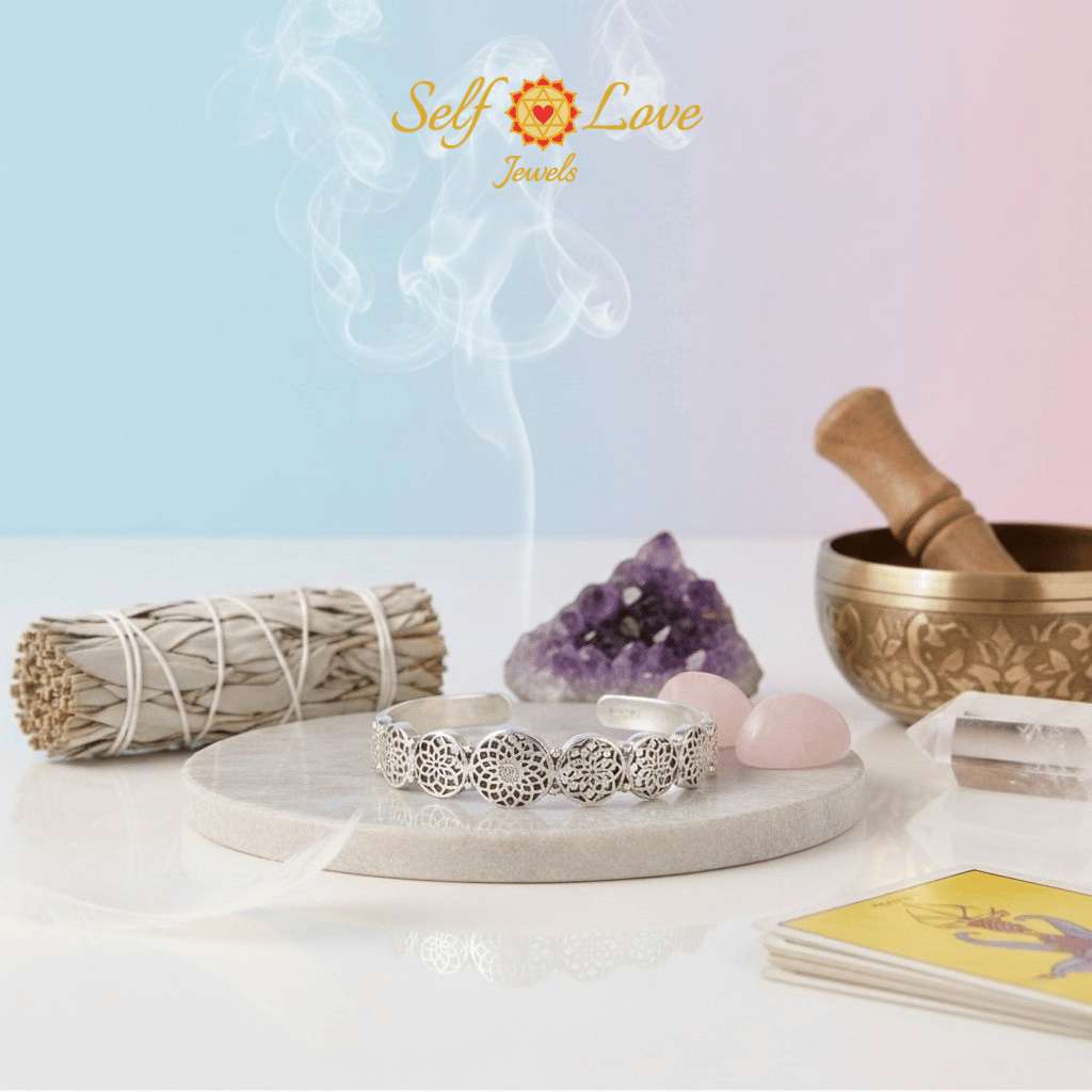 - Subtles down the energy, heart chakra symbol added inside the pattern.