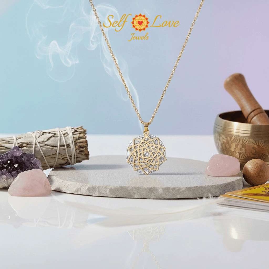 Our crown chakra pendant is made with high premium brass and has 18kt high-quality gold plating. We design each piece with positive intention and bless it with special prayers to help you blossom your crown chakra.