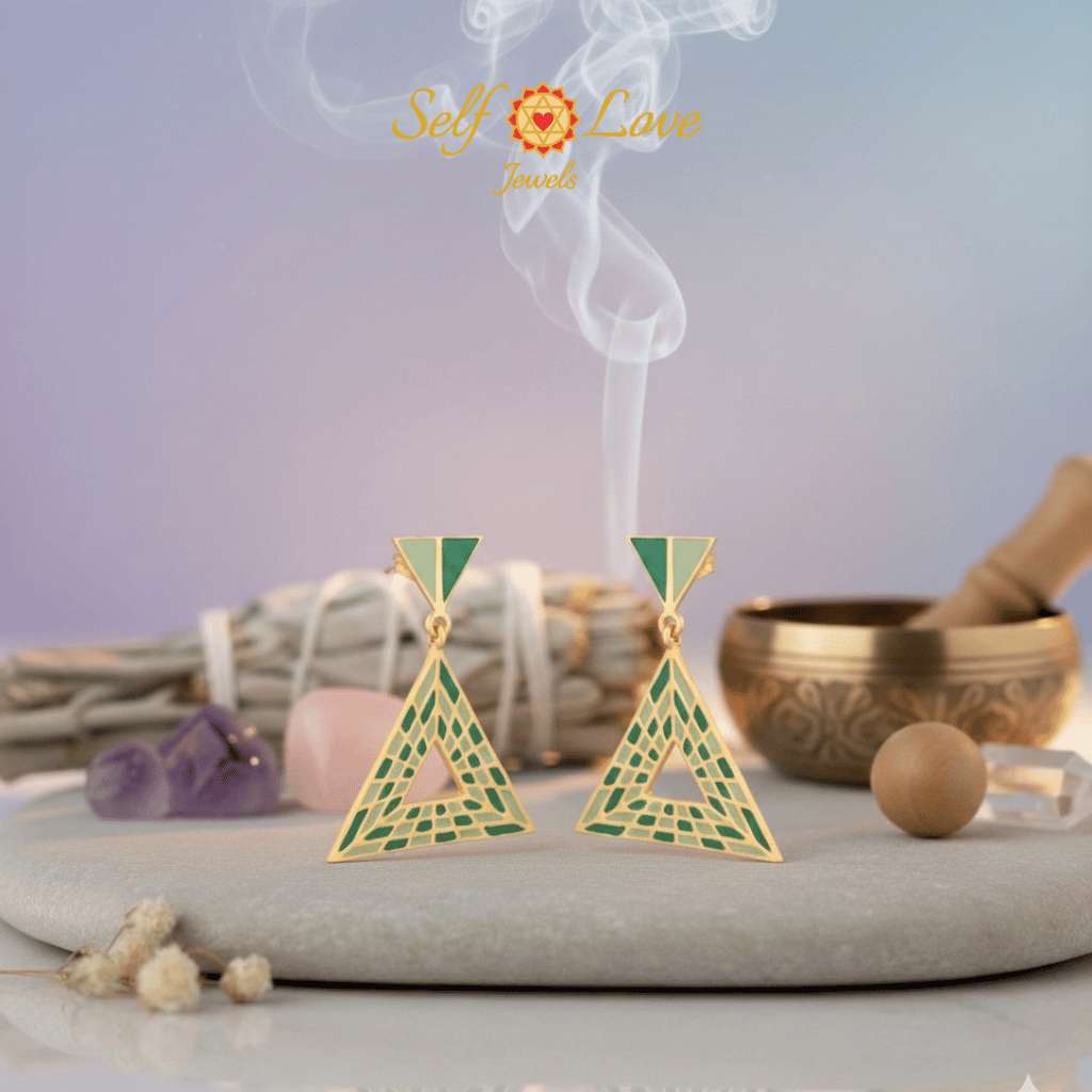 Triangular Energy Generator Earrings - Green